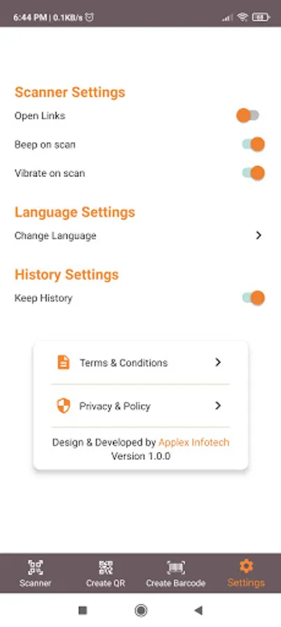 All QR code scan results and QR code generation results are saved in the app's history screen. You can review your QR code in this list and share with everyone.