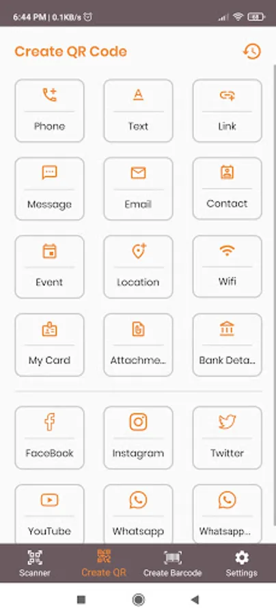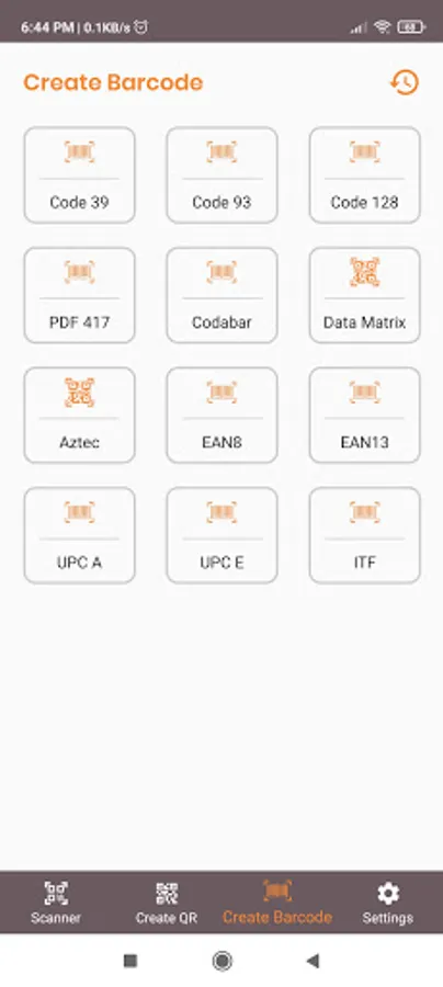 In addition to scanning QR codes, QR Scanner also supports you to create QR code with barcode generation feature. It supports many popular barcode formats such as: QRcode, industrial barcode, PDF-417 code, EAN code, Aztec code, Data Matrix, UPC code, ITF, etc.