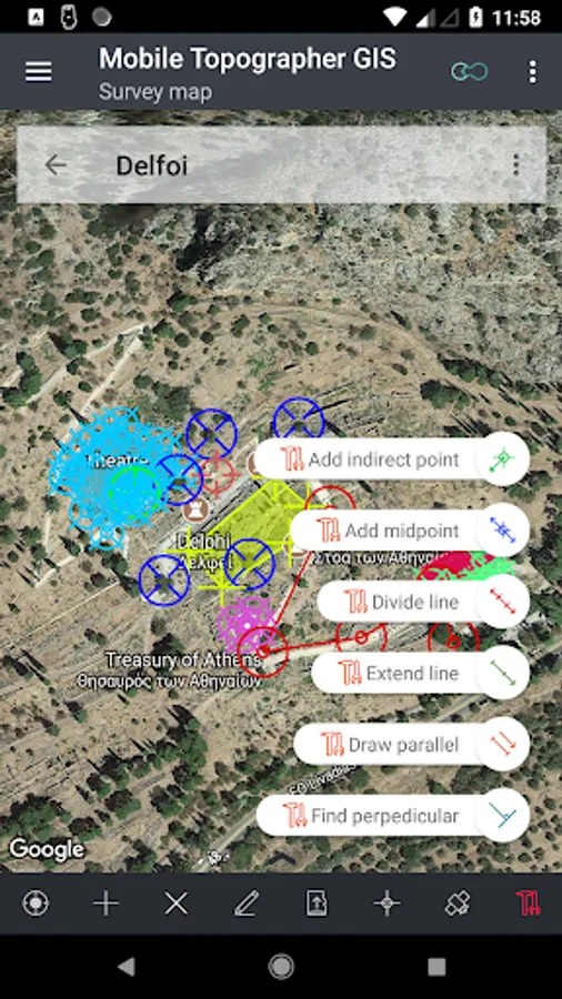 - *** NEW *** geodetic tools. Add indirect points via on of the following options: 1 point + Distance + Azimuth, 2 points + Distances + Select, 2 points + Azimuths, 3 points + Distances, Midpoint of line, Divide line, Extend line, Parallel line, Perpendicular to line.