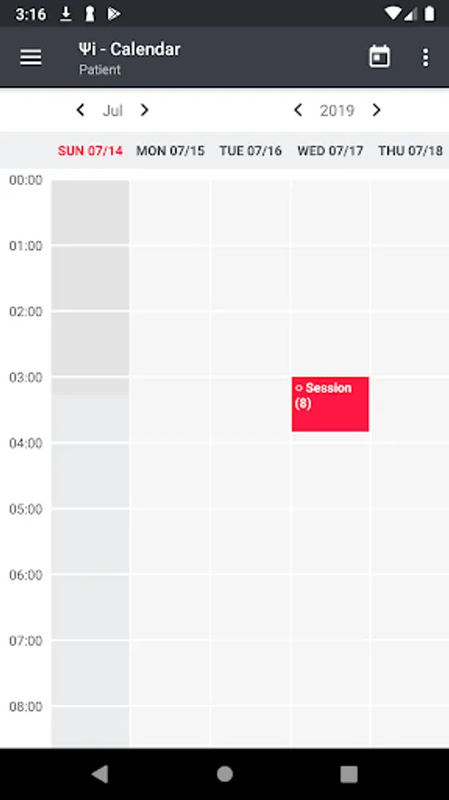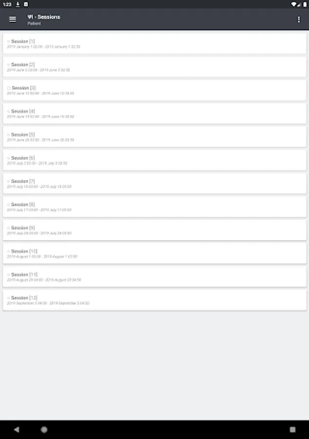 - Sessions. When the therapist fixes a new date on his calendar for a new session with the patient, or updates an existing one, he simply selects “send Sessions to patient”. All info are send to the patient into his Psy interactive (patient) app.