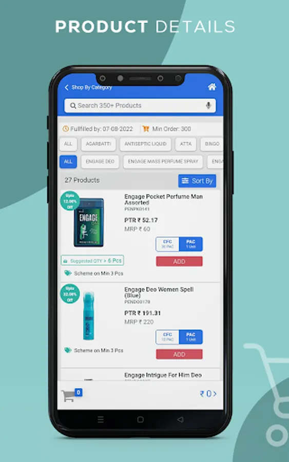 - Search any product through the smart search option based on name, price & even grammage of the product.