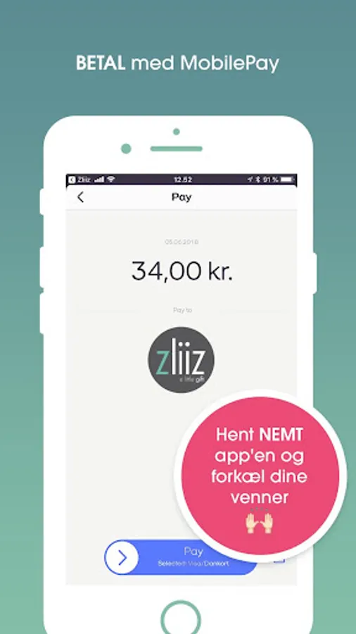 Betalingen sker i appen nemt og bekvemt via MobilePay.
