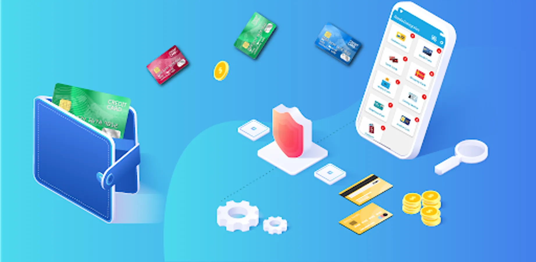 - Secure your wallet (credit cards, government credentials, and debit cards) with your password