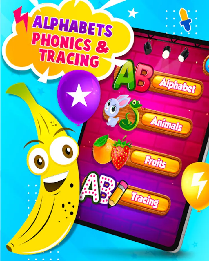 ABC Kids - Phonics & Tracing is created as the ultimate alphabet teaching letters and abc phonics sounds app your kid needs. It can teach everything from fruit names to animal names, animal sounds, learning letter sound and letter shapes. Everything is fully adapted in a way that makes it fun for kids and also extremely engaging and cool.
