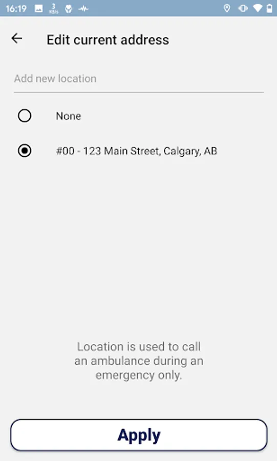 To use the App, individuals first register with a very simple process. You will be asked to enter and confirm your mobile phone number, and enter your address and instructions that may be necessary for medical support attendant to access your location in an emergency. The personal information collected is limited to your phone number, address, and access instructions, which are required to support a response by medical services. No name or E-mail address is collected. The information collected is held in strict confidence in Canada, and not shared with any third parties unless necessary to provide medical services due to an emergency. In the event of a medical response being required, the information on phone number, address and location details will be shared with the third party response centre, STARS, and Alberta Health Services Emergency Medical Services, to support the dispatch of an ambulance to your location.