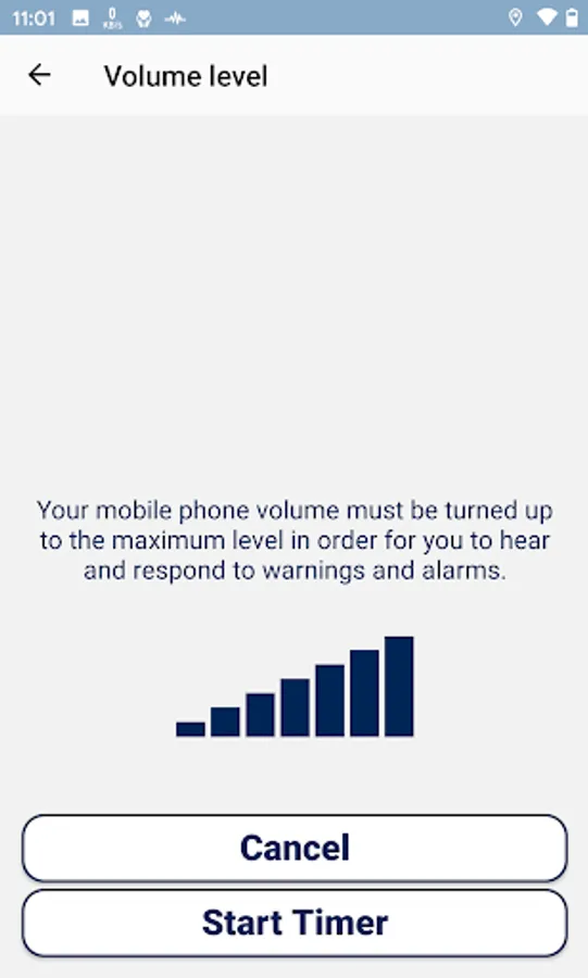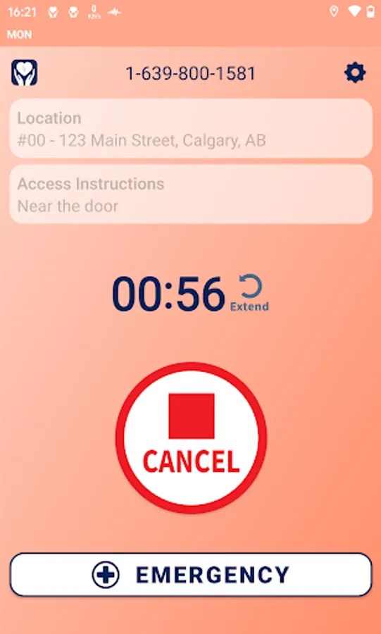 When you use alone, you start a countdown timer that starts at one minute. Once the timer counts down to 30 seconds, you will hear an alarm sound on your phone that will gradually increase in volume. At this point you can extend the timer in one-minute intervals, up to a maximum of five minutes, and the alarm tone will stop. If the timer reaches zero, the App will ask for help, and an agent from STARS will attempt to call your mobile phone. If this agent cannot reach you, or if you indicate that you need help, the STARS agent will call medical support on your behalf. If this was not an intentional call for help, you can “Cancel" the request for assistance.