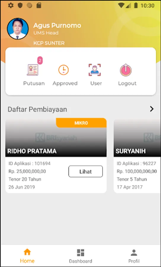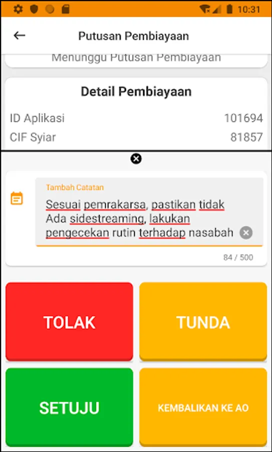 -Preview untuk informasi putusan yang meliputi : prescreening, informasi agunan, hasil scoring, dan lain lain.