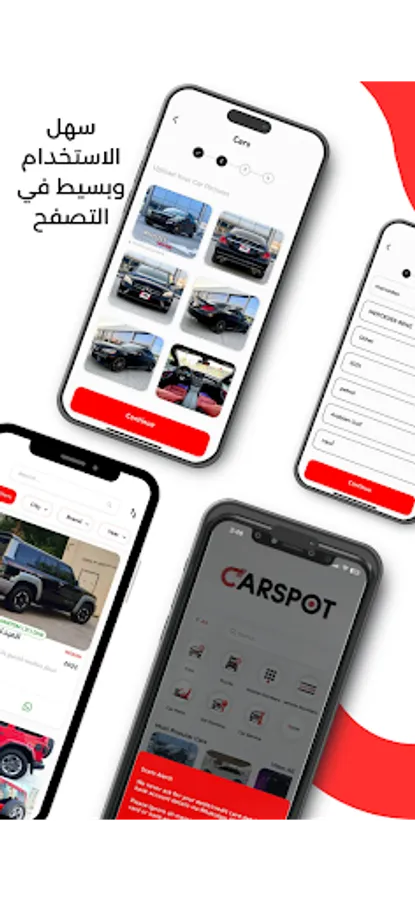 كار سبوت تطبيق يعني بجميع ما يتعلق بالسيارات من بيع و ايجار و قطع غيار و ارقام لوحات , و يقوم بربط البائع و المشتري بكل سهولة و بأسرع الطرق