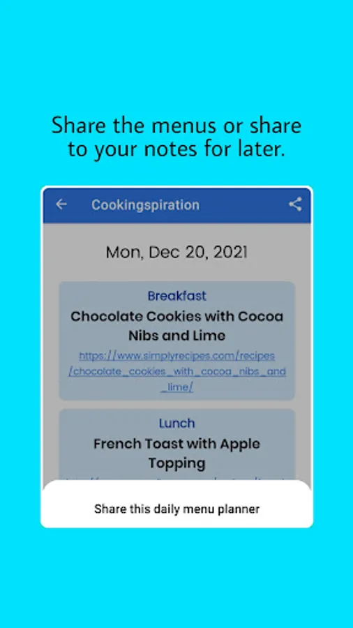 User can shares the menus information too via social media, or share it to notes for later.