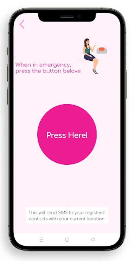 The distinctive attribute of this android application is that it sends SMS to the saved contacts until the power switch in the application is clicked. Ongoing real-time location through SMS sends the google map link to the saved contacts.