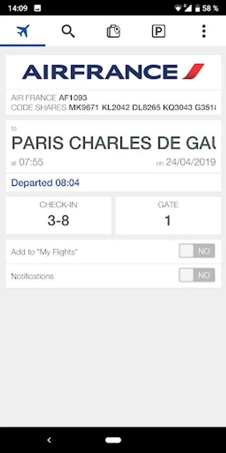 For every flight, push notifications can be activated to be informed about status changes like delays or boarding times.