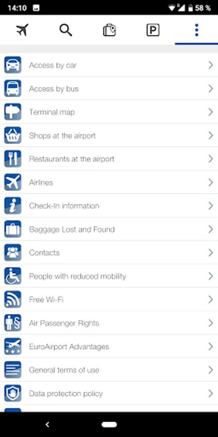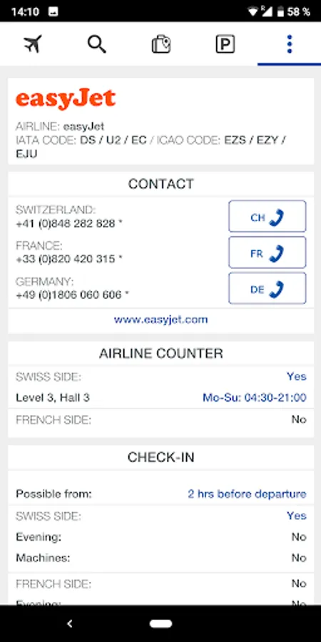 The EuroAirport app is trilingual (English, German, French); the desired language can be changed in the settings.
