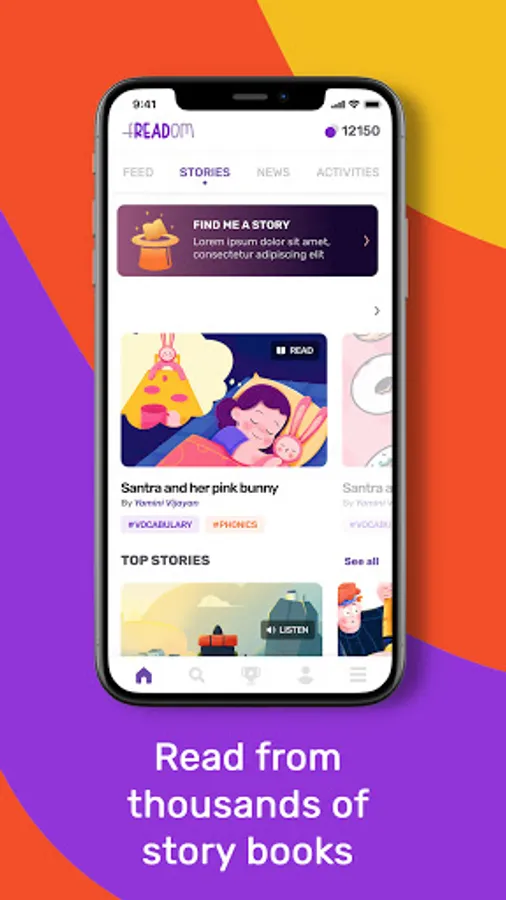 Built with 10 years of primary and secondary research, Freadom first locates the users reading level and then navigates them to the desired level, basis a proprietary reading scale. We use an AI ready recommendation engine to match users to the most relevant content.