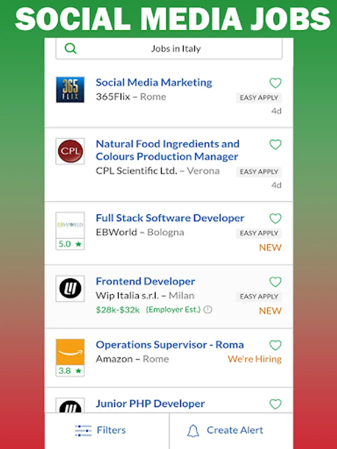 And If you are looking Jobs in Italy for English Speakers and Italian Jobs, just download this app Jobs In Italy app and get latest jobs in Italy. You can also find Italy Jobs for foreigners including jobs in Italy for Indians, Pakistanis, Filipinos and more.