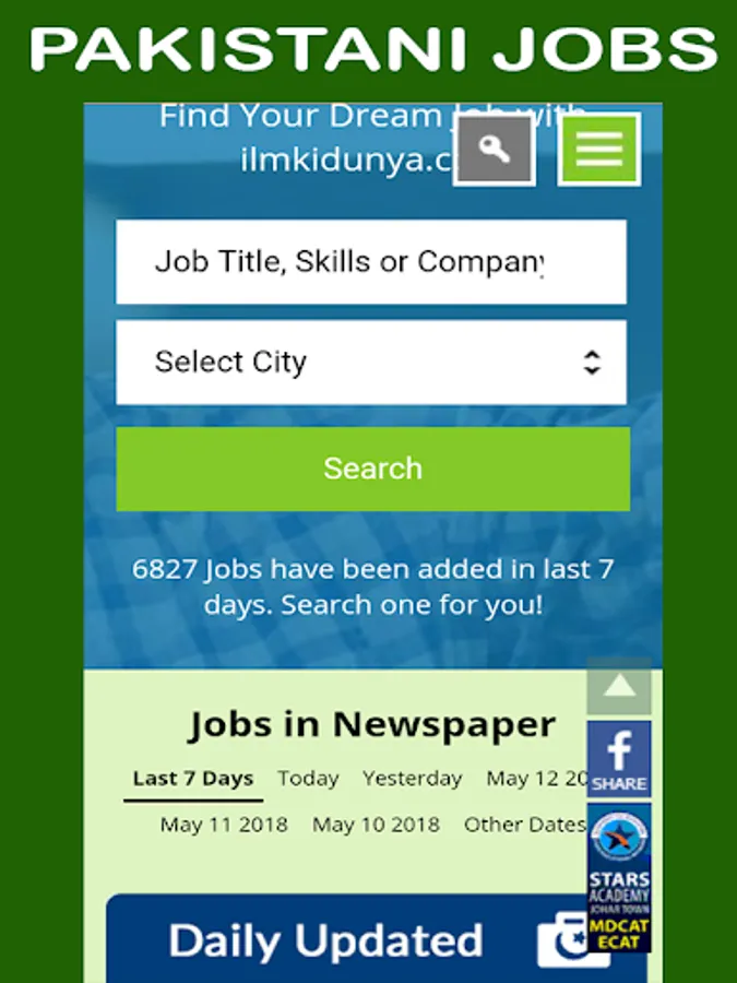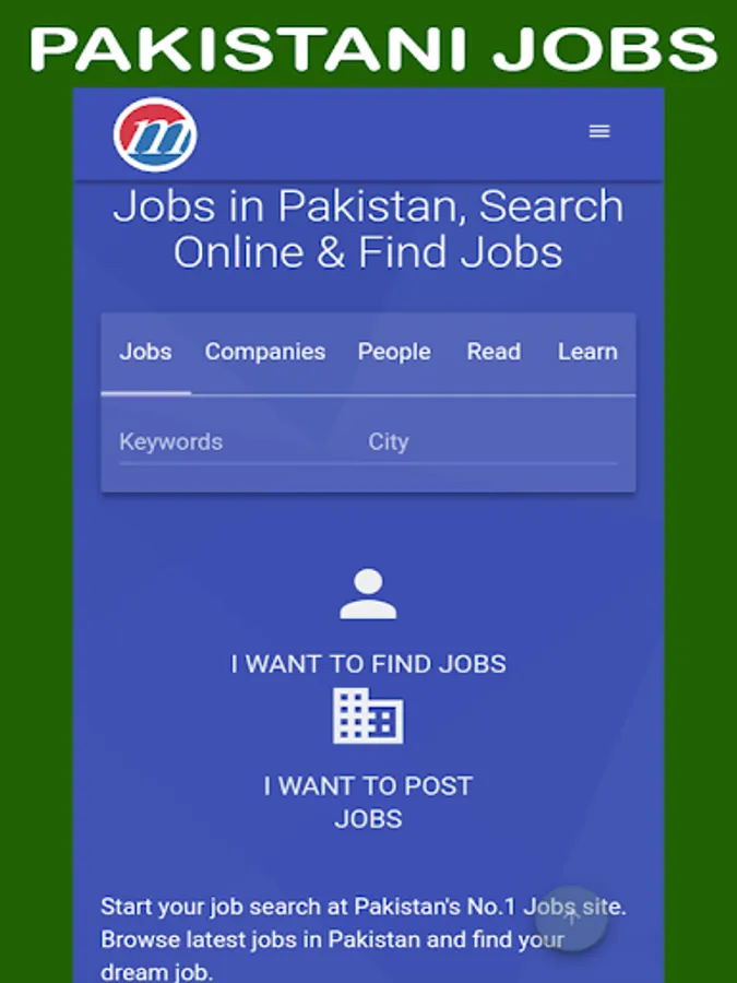 If you are going to start your career and finding job in Karachi, jobs in Lahore, jobs in Islamabad and jobs in Pakistan then download this Pakistan Jobs App and get daily new jobs in Pakistan.
