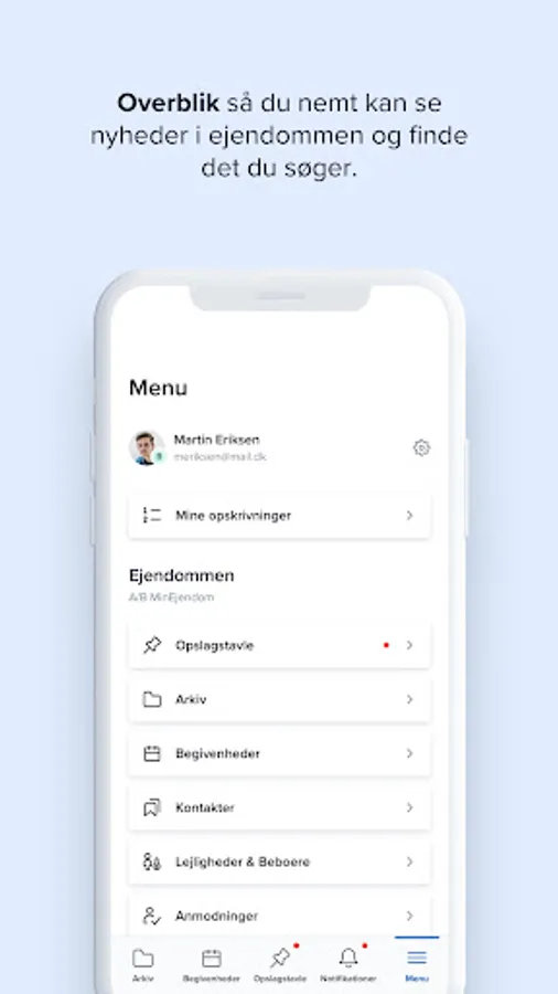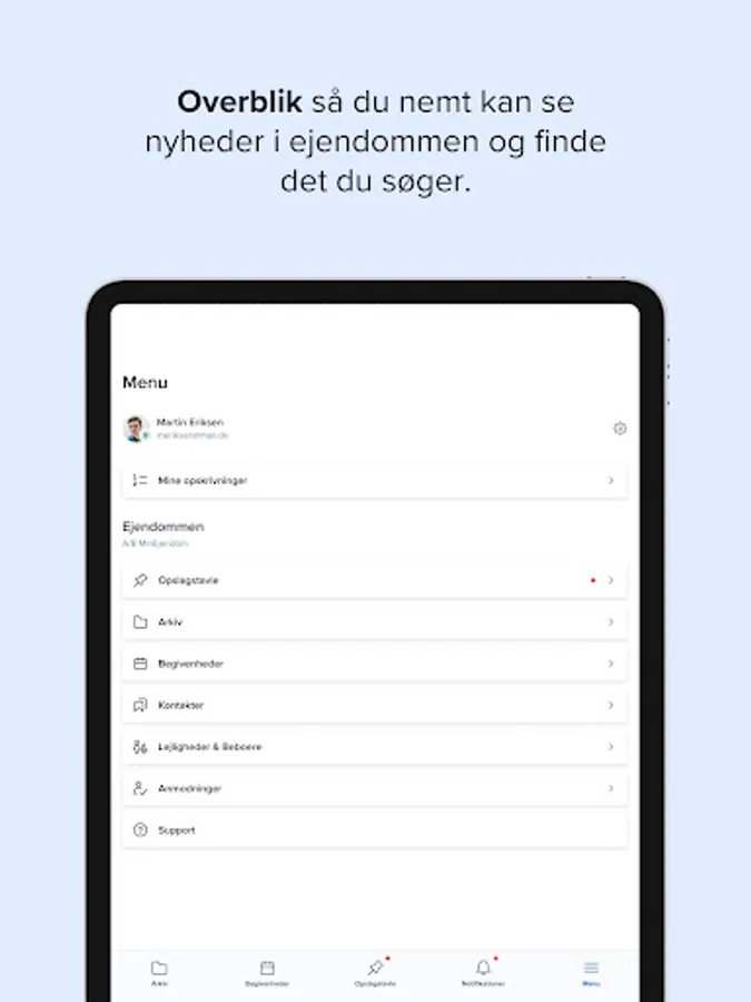 MinEjendom is a user-friendly digital platform that makes it easy to manage the property's internal communication, important documents and maintenance.