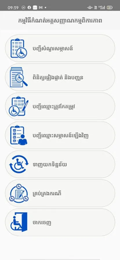 2. Provide identification cards to persons with disabilities, so that they are enabled to receive equitable and inclusive services in compliance with the policy of the Royal Government of Cambodia.