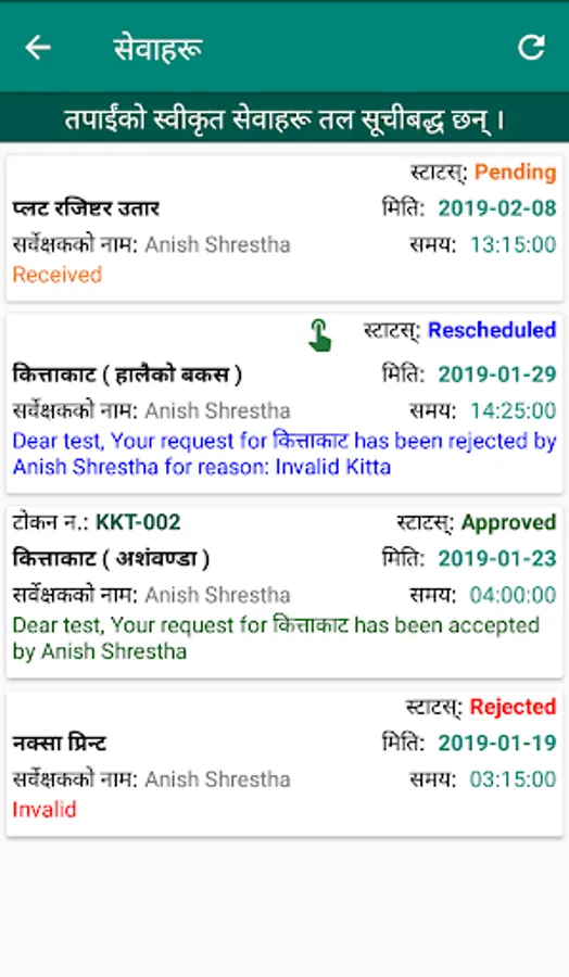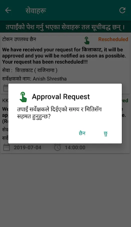 Survey Office Kaski, Pokhara (SOKP) is a government organization under the Ministry of Land Management, Cooperatives and Poverty Alleviation, Government of Nepal. This SOKP application is a user centric mobile application which provides official information and facilitate to request eToken for the survey services. Any user can get instant information sent by the survey office with a notification via this mobile application. The application also provides official application forms and formats required for the official process and procedures. The user can use this mobile application to request an eToken for scheduling an appointment for a specified service, date and time from anywhere and anytime. After applying for the eToken, the user will be notified with a status of approval with an eToken or request for rescheduling or rejection of the request.