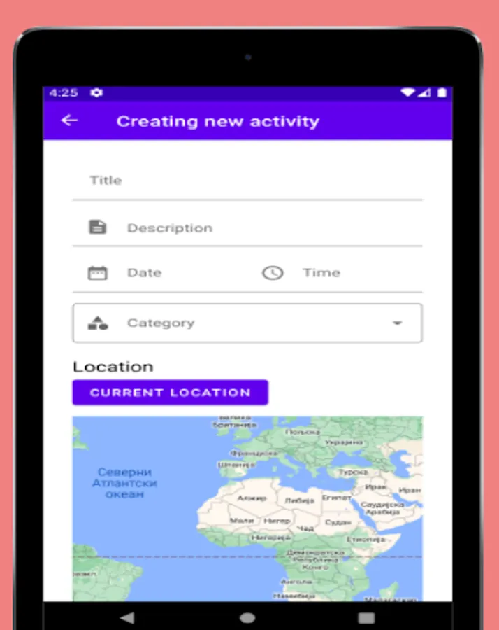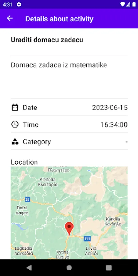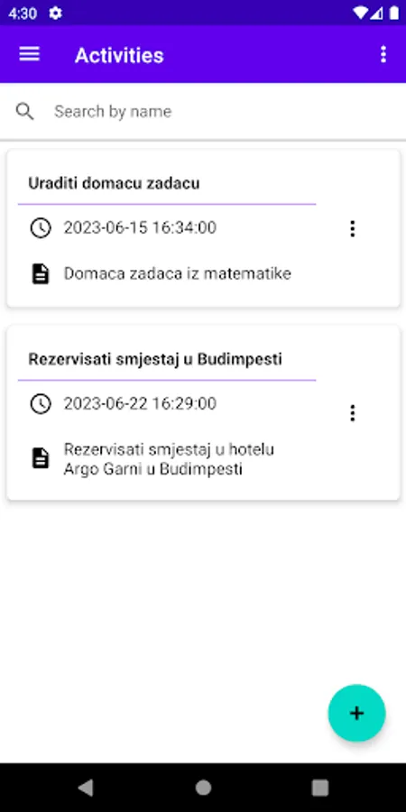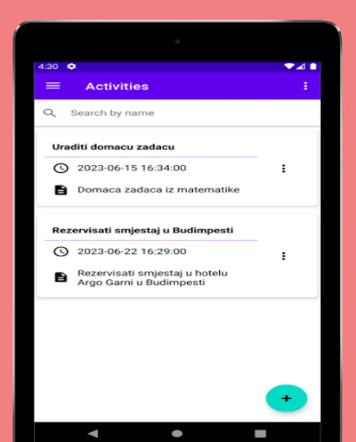 Aplikacija vam omogućava da kreirate aktivnosti, sa svim neophodnim detaljima.