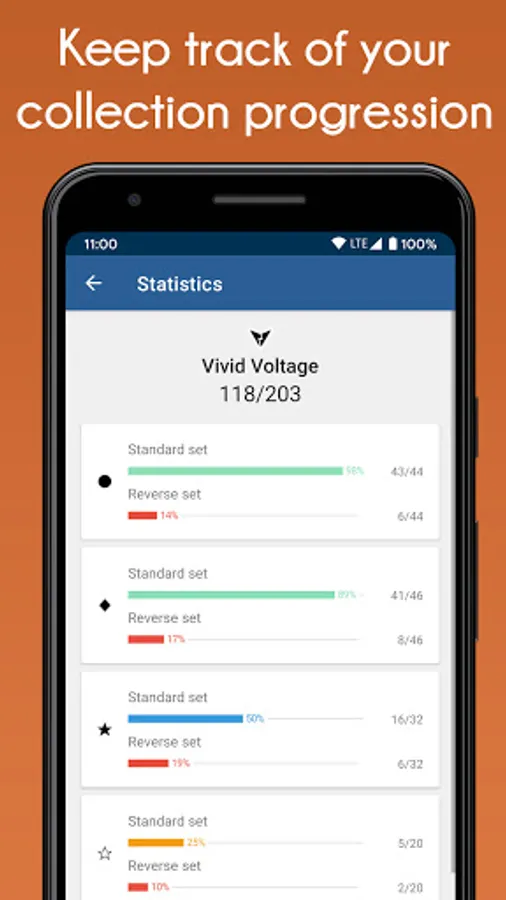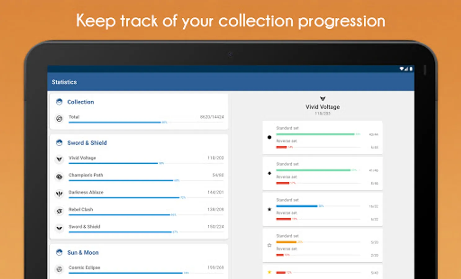 Complete statistics to help you keep track of your collection progression.