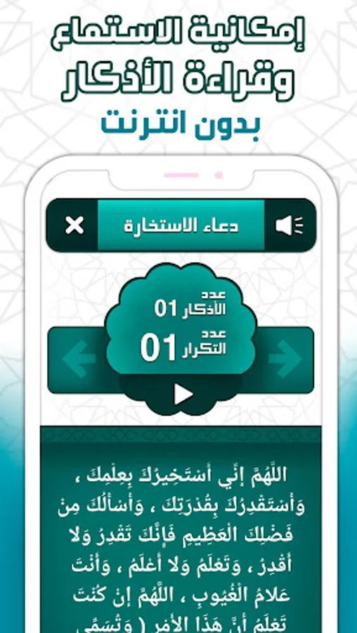 The voice dhikr program is a program that provides users with many advantages, as it works without the Internet, and allows the ability to listen to all dhikr and supplications or read them through texts written in a clear and large font
