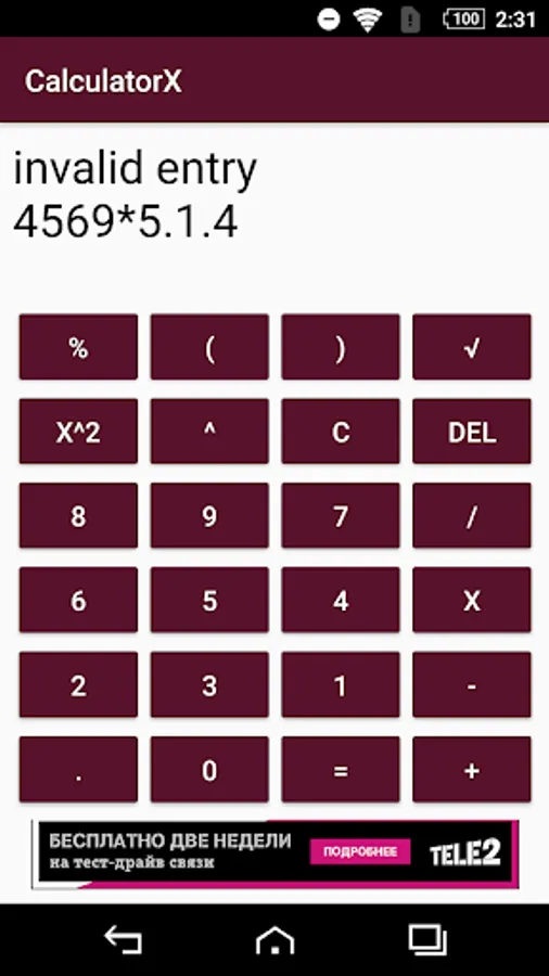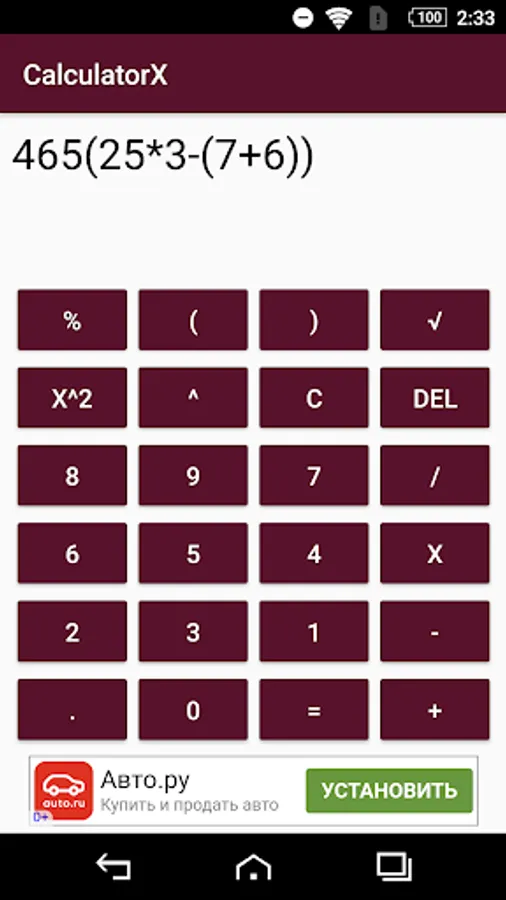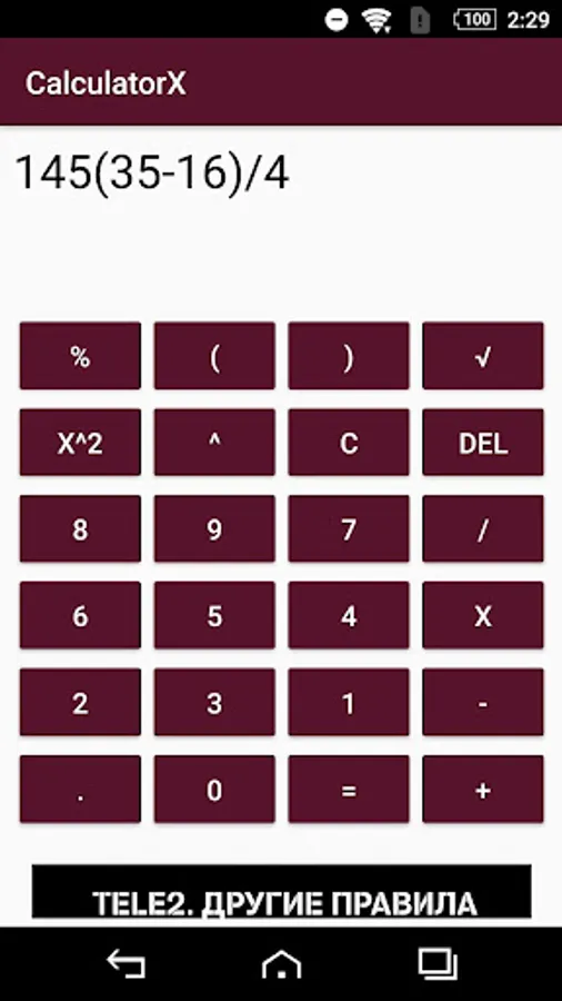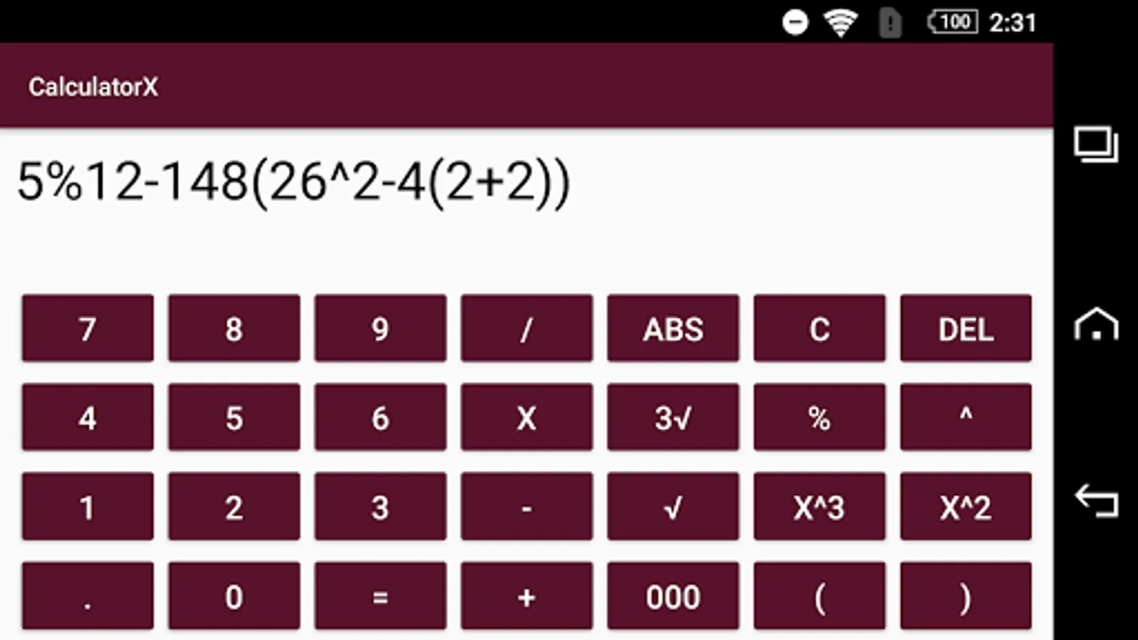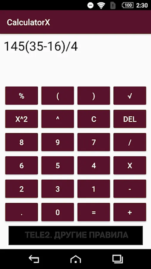 Simple handy calculator with brackets, powers, sqrt, percent.