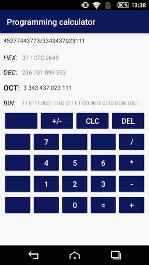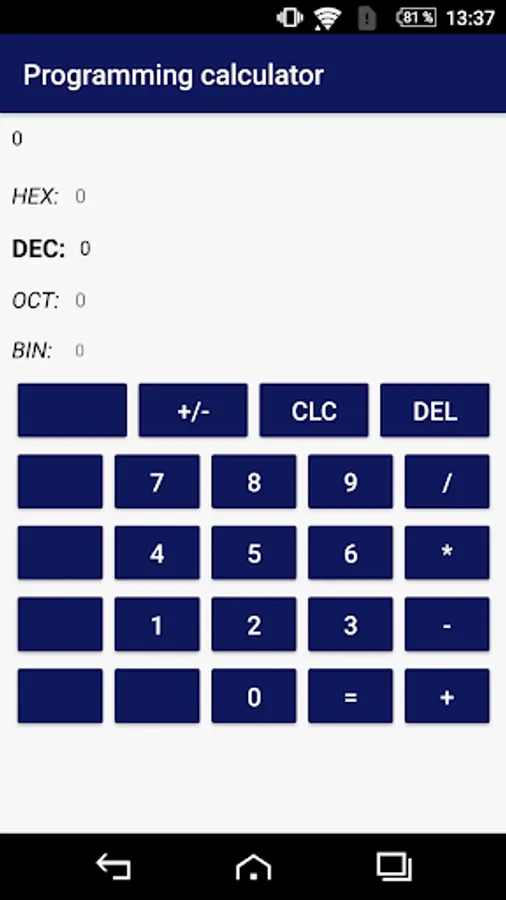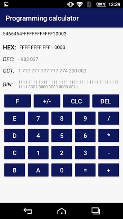 Enjoy one of the best programming calculator on Android platform! You can calculate in four numeric systems and transfer numbers between them. Supports DEC(10x) HEX(16x) OCT(8x) and BIN(2x) numeric systems. Very simple interface can make you calculations really comfortable and quick. Are you an IT engineer? This calc is what you need.