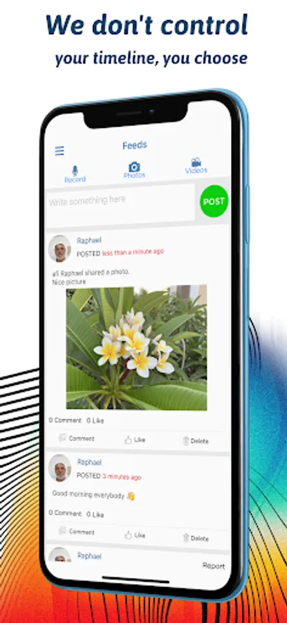 At realfriends, there’s no spying, no following, and no adds. We don’t control your feeds page, your feeds are exclusively your friend’s posts and no posts from unknown strangers.
