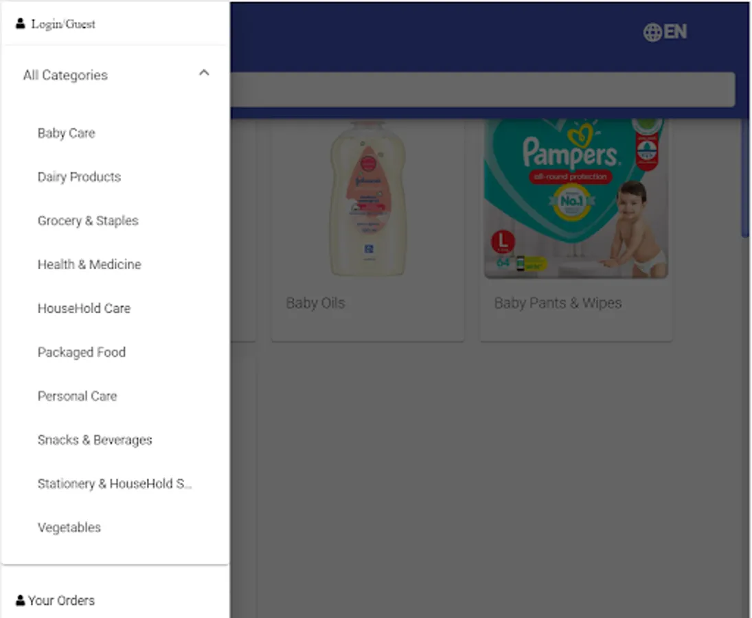 Online store for food and grocery products
