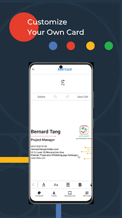 Let's Swapp is creative digital name card application that allow user create own business card and also upload paper card as storage. It also allow user to share name card via QR code or other different links like whatsapp