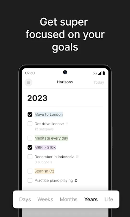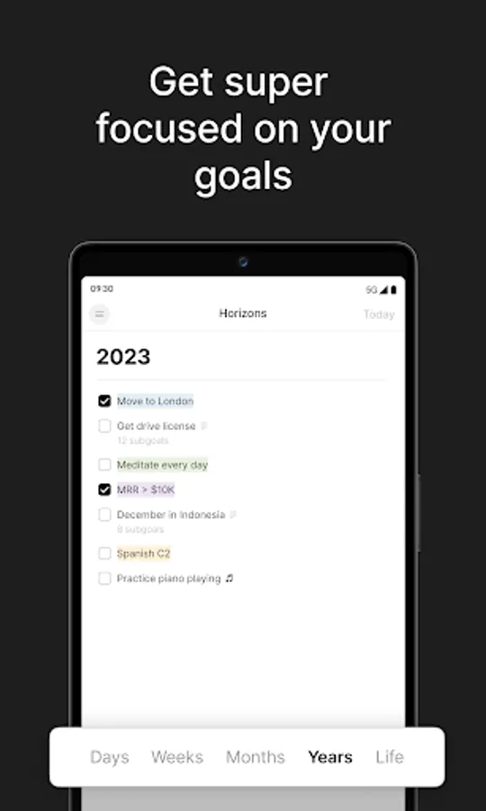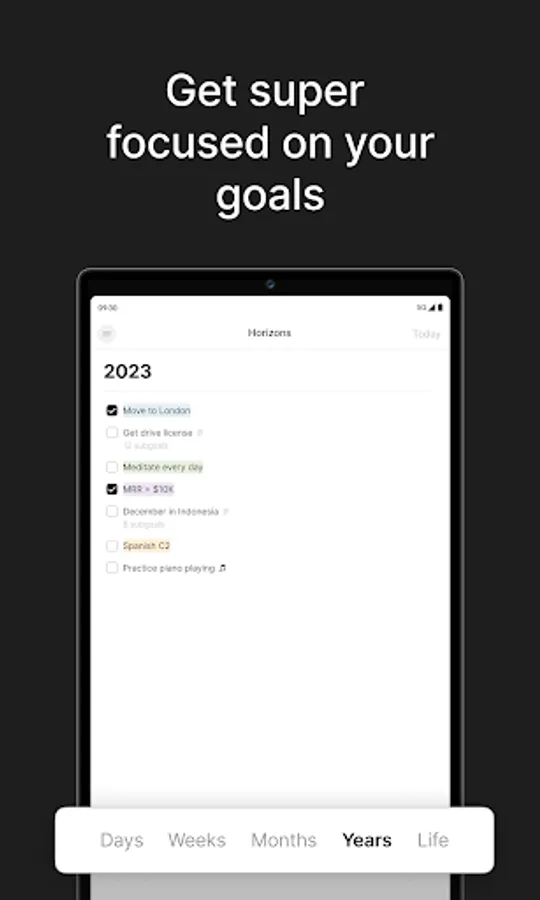 · Rich Text notes for your goals (subgoals, links, quotes, headlines and more)