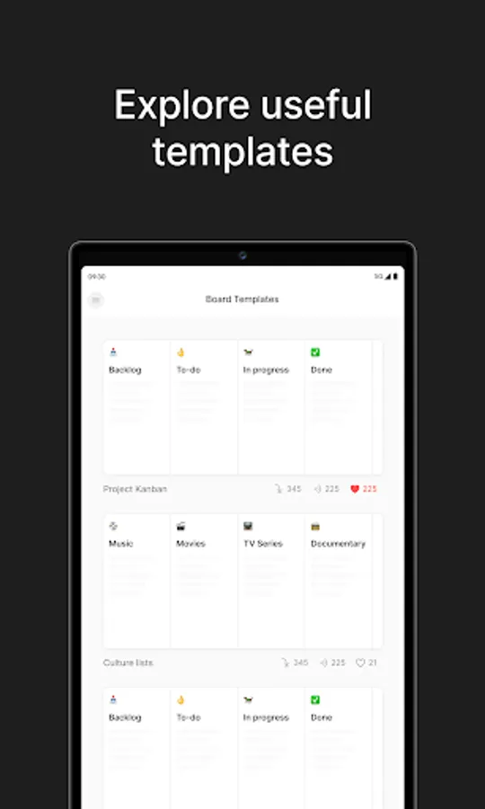 Organize endless lists of tasks, ideas, plans, movies to watch, books to read, anything you want to organize into an endless number of boards. Use a wide range of templates from our community to speed up your train of thought