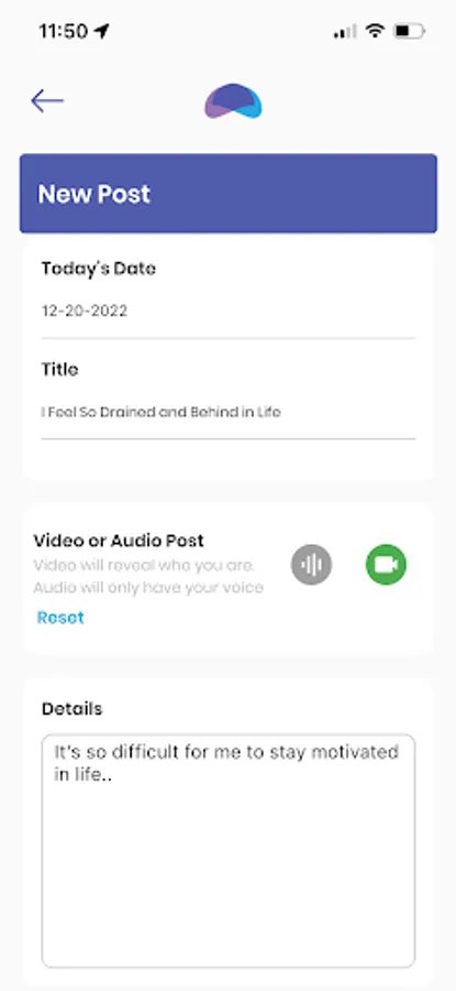 - Select Mental Health Types that relate to your post such as: Depression, Anxiety, Loneliness, Relationships, and more