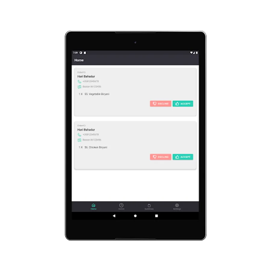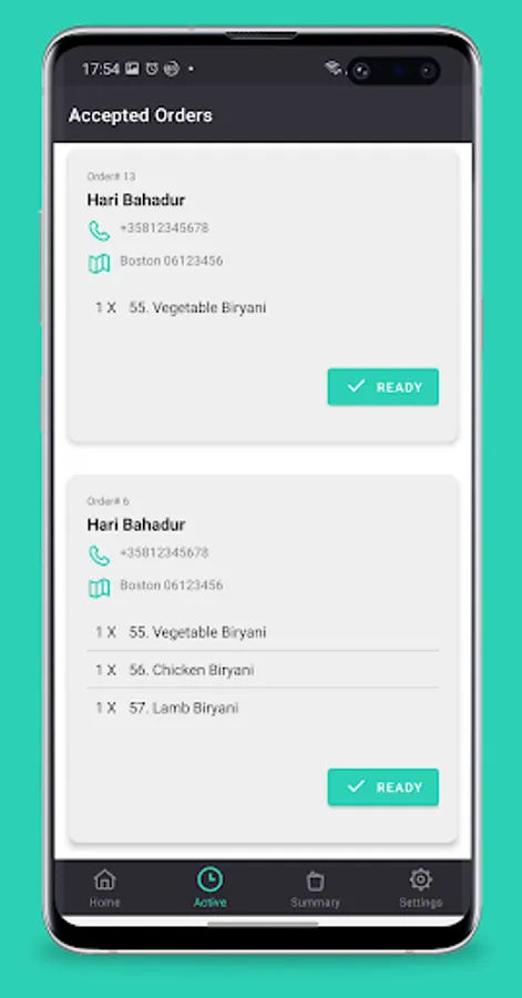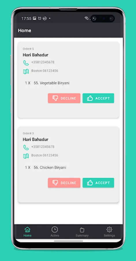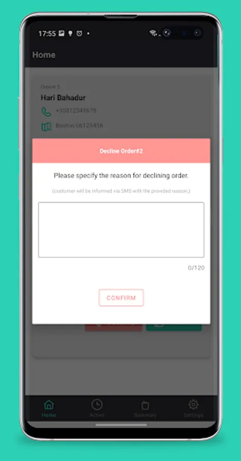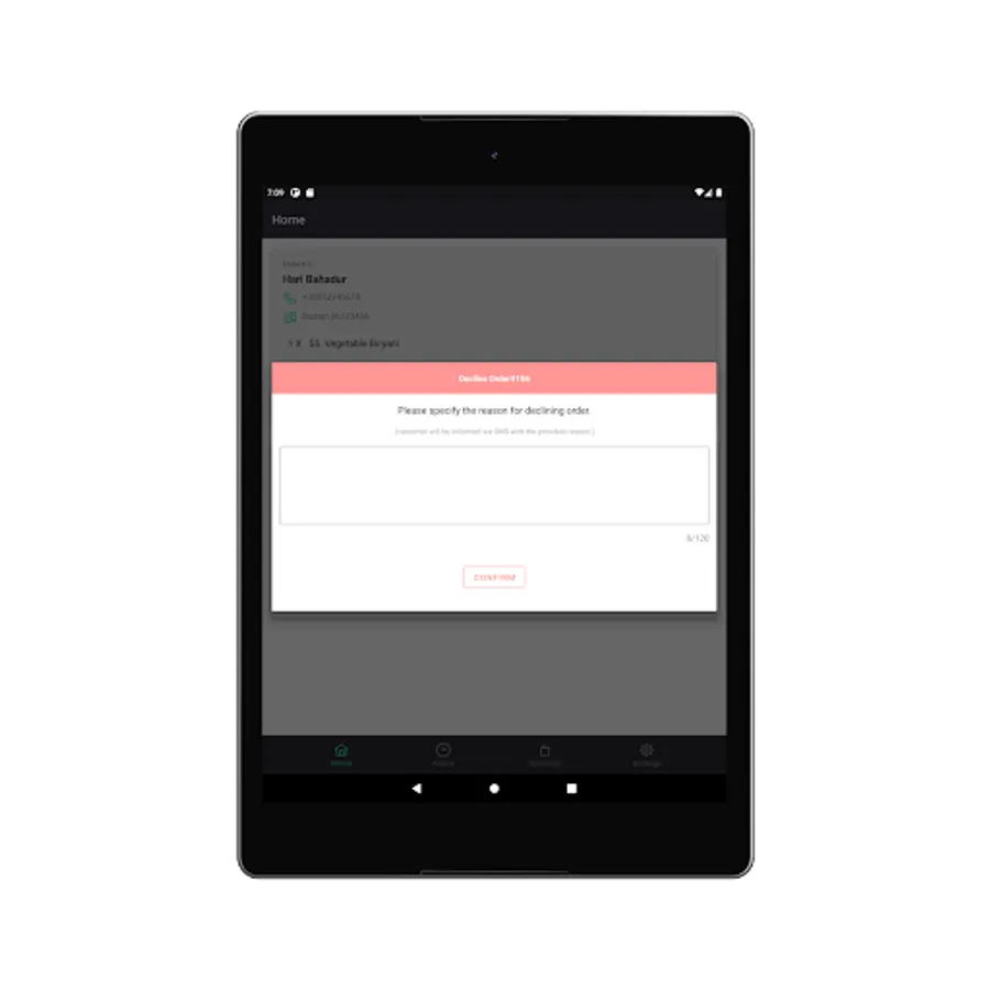 Take actions on the orders. Accept or Decline orders and send appropriate SMS message. Alert customers once the order is ready.
