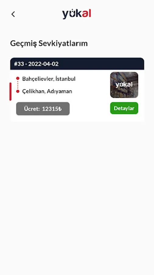 YÜKAL ile sevkiyat sahipleri nakliyesini yaptırmak istedikleri emtialarının sevk bilgilerini paylaşarak ve nakliye için belirledikleri ücret ile sevkiyatlarını uygulaya üye olan tüm nakliye firmalarına ücretsiz olarak ulaştırmış olacaktır.