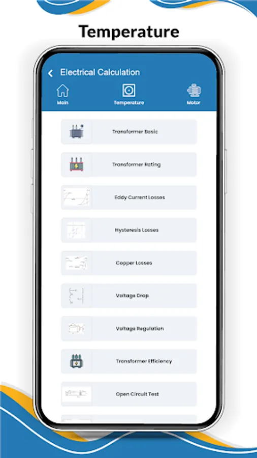 The electrical calculation function is also available in this application. In this application, you can calculate all the formulas related to electricity by setting the correct values for the calculations.