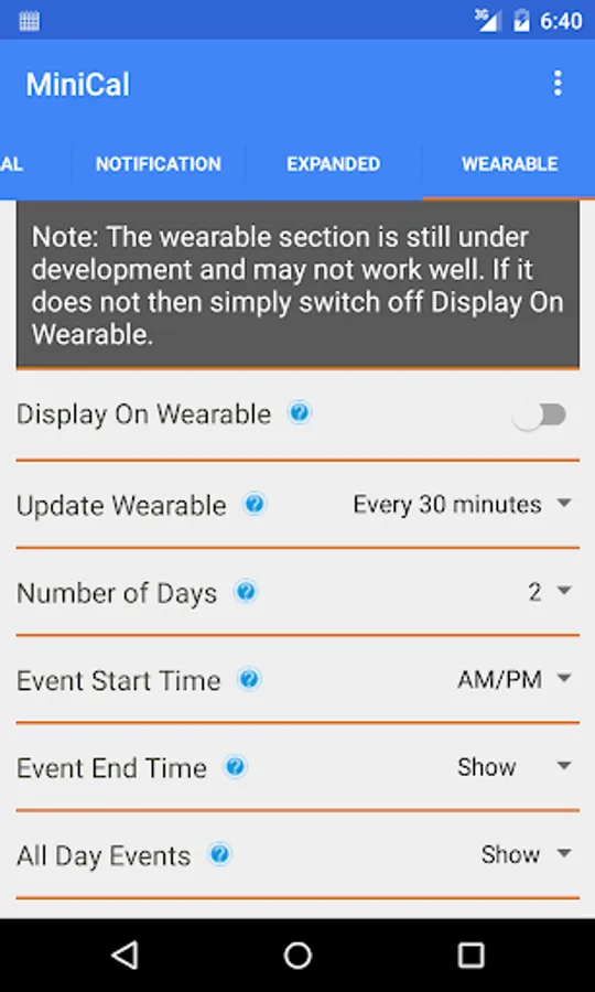 I’m working to support some type of MiniCal calendar display on Android Wear. More on this to come.