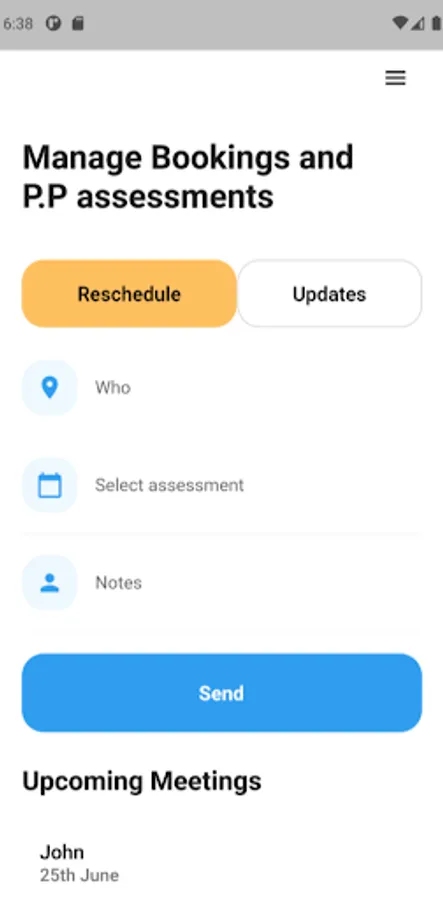 PhysioMe will be the first ever service which allows for physical therapy to be done on a 100% remote basis. Through PhysioMe, patients will no longer need to meet their physical therapists in person as scheduling, video calling, messaging, physical pain assessments and discovering the right physical therapist for you can all be done through our app. Don't waste any more unnecessary time and energy traveling to your physical therapist. Bring them to you with PhysioMe.