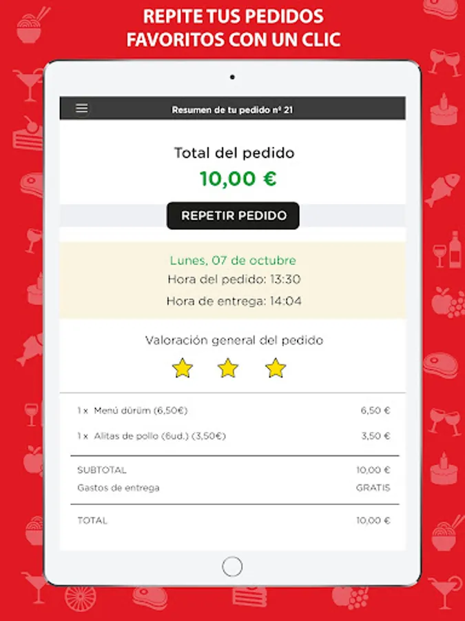 Choose between various dishes or house specialties: Dürüm, Kebab, Falafel, Chicken Wings, Nuggets, Patatas bravas ... download our app and check out our entire variety of dishes with photos in full color.