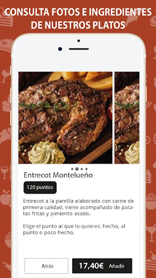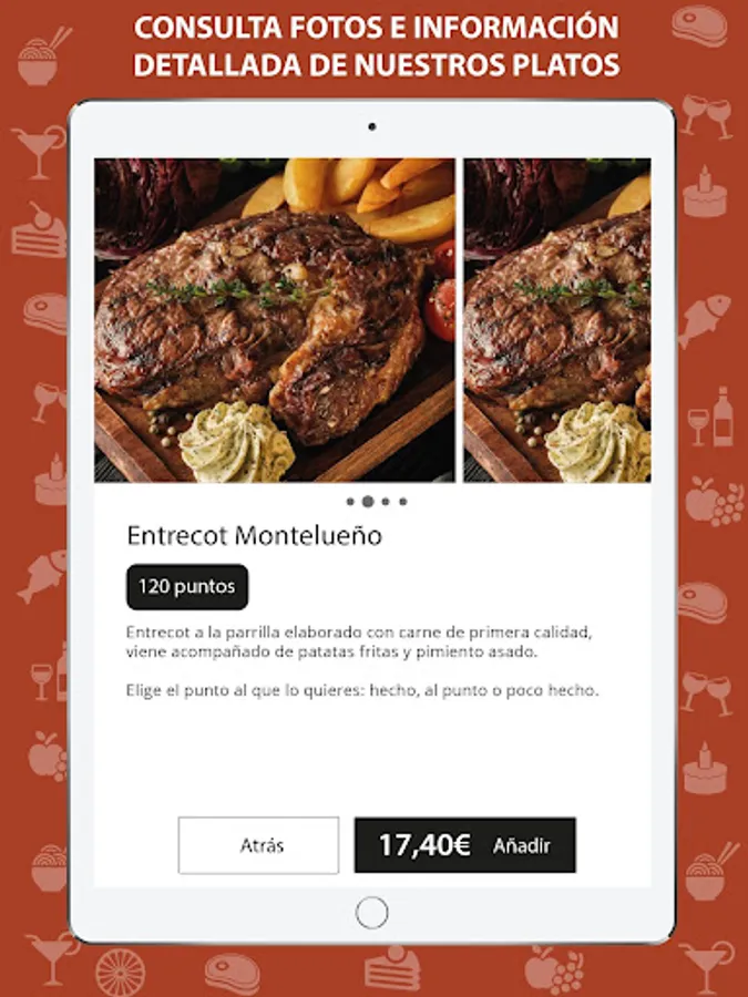 If you like Spanish cuisine try our famous steak, we have elaborate blood sausage croquettes and an extraordinary entrecote.
