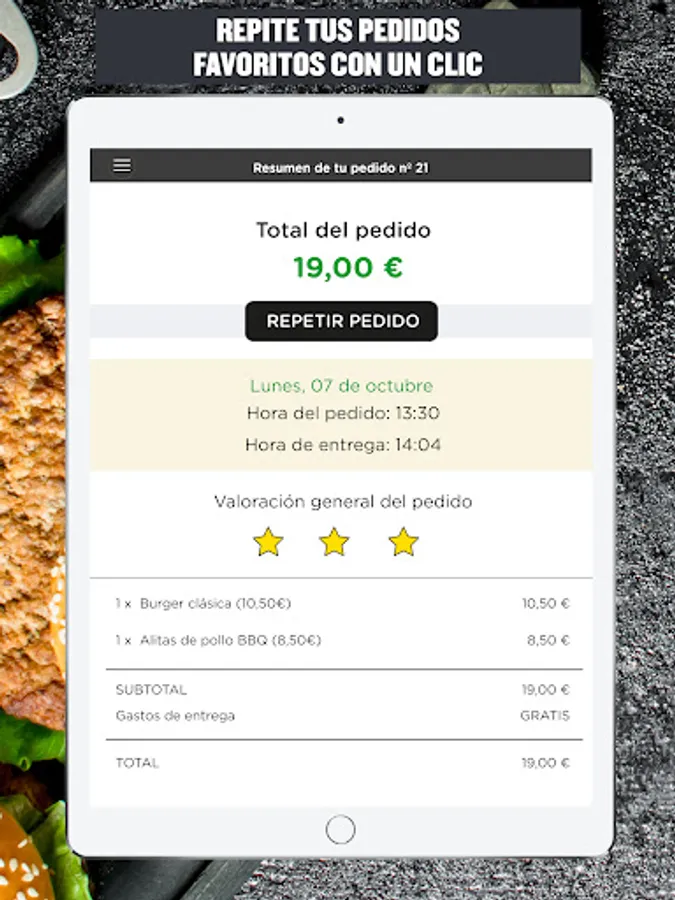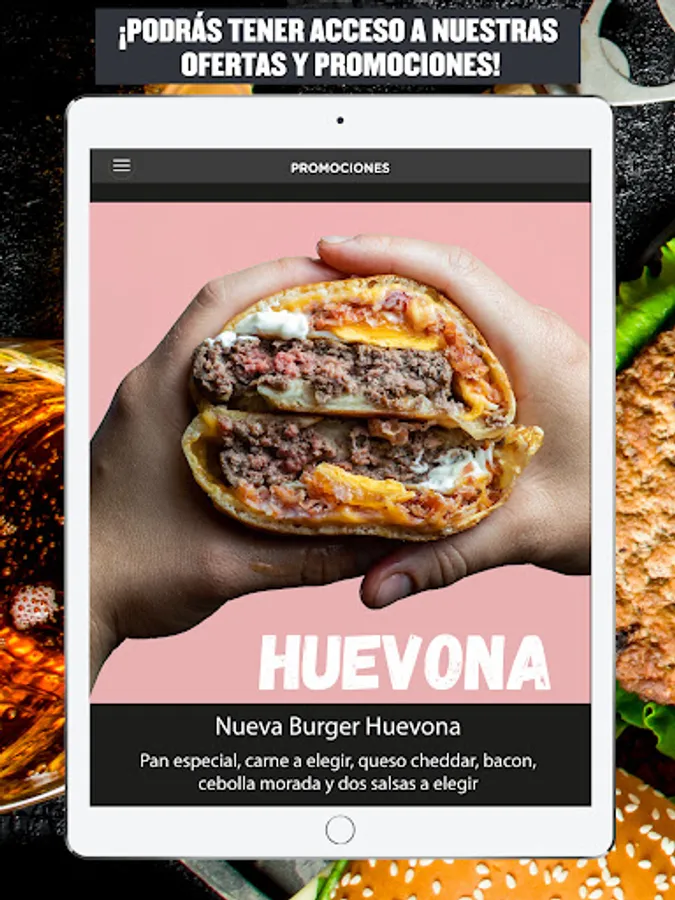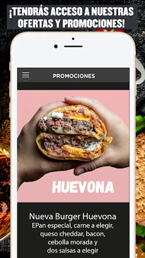 Download our app and order your Gourmet Burger: We'll take it home, always warm!