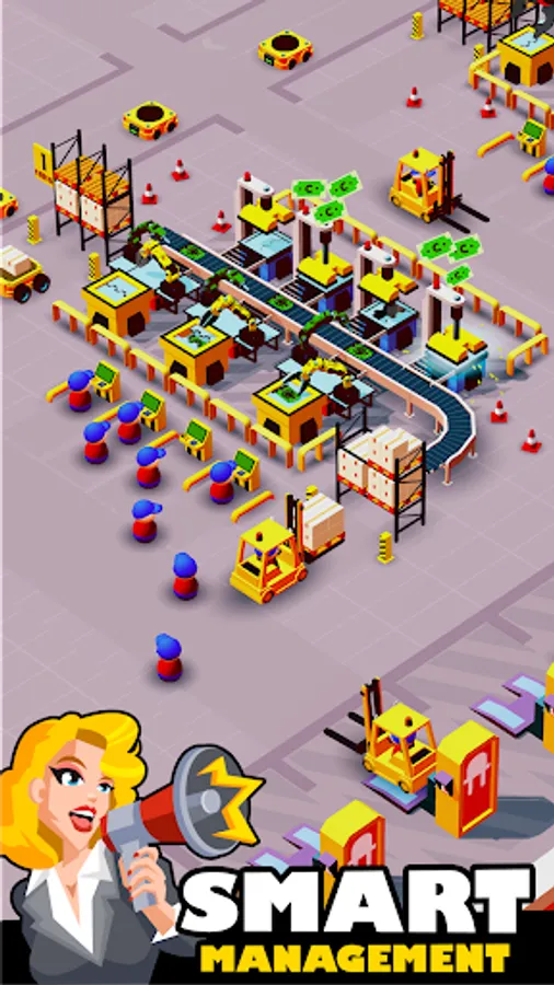 Idle Smartphone Factory Tycoon is a phone factory simulator clicker game where you start as a small phone entrepreneur. Build your idle empire tycoon, work hard, invent strategy, and grow your mobile phone factory by buying assembly lines, filling contracts, earning more cash, hiring managers. Build your idle mobile smartphone tech empire and become the richest idle tycoon in the world.