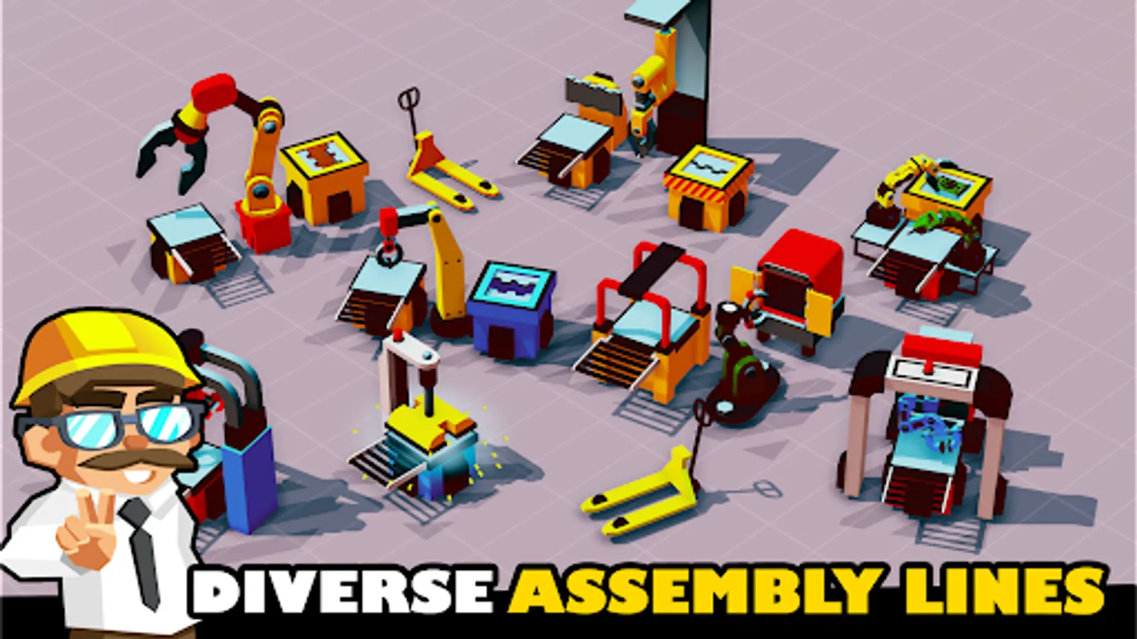 • Manage and upgrade 10 assembly lines! Assembly motherboard, graphic cards, processors, cases and much more, just to become the best manager in this idle factory simulation!