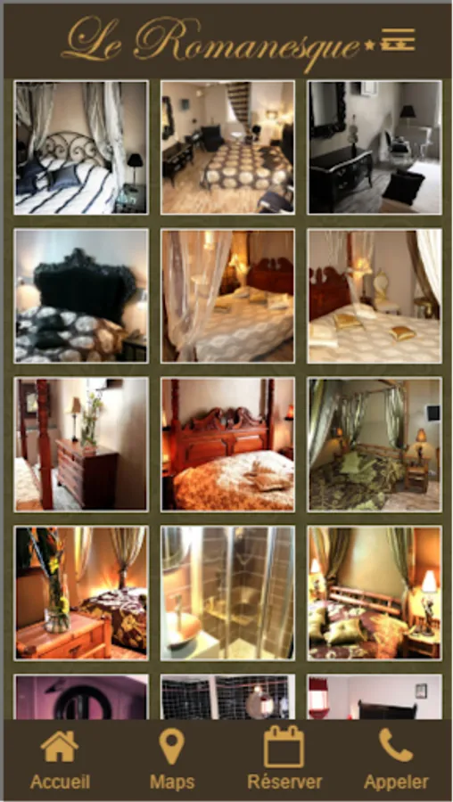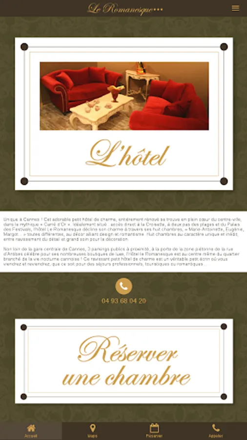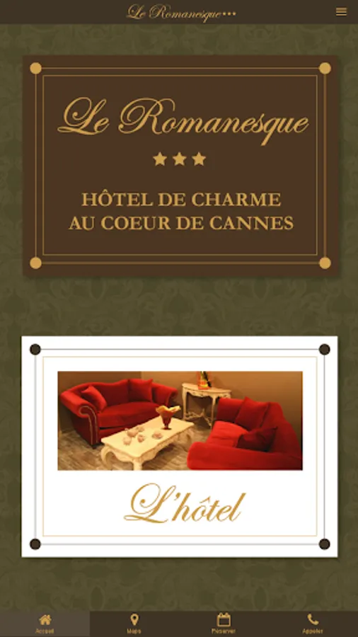 The application of the Hotel Le Romanesque *** gives you access to practical information as well as different services and hotel activities.
