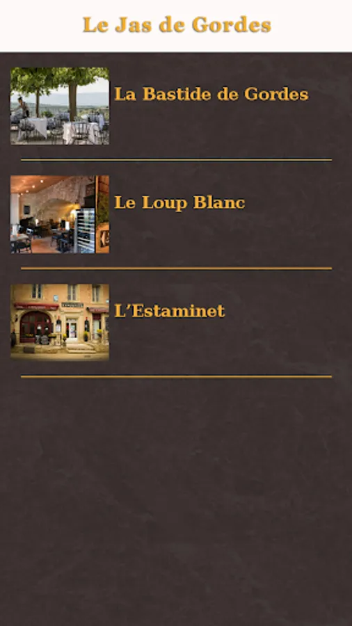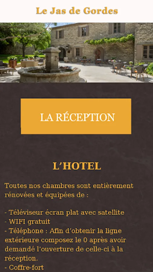 The application of Le Jas de Gordes *** provides access to practical information as well as different services and hotel activities.