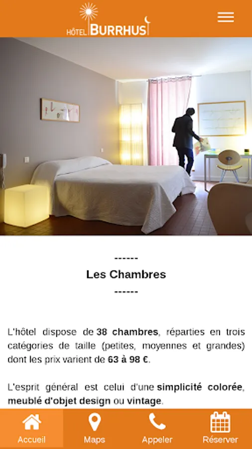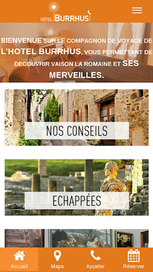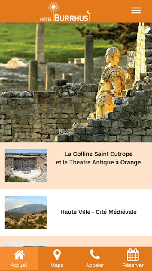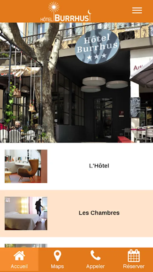 Application of classified 4 Stars Burrhus hotel provides access to practical information as well as different services and hotel activities.