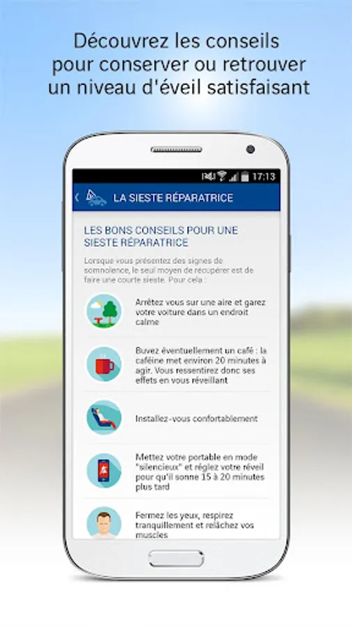 Once the test is done, and depending on its outcome, the user accesses advice sheets developed in partnership with the National Institute of sleep and alertness (INSV) on best practices to promote an effective rest before and during its path. The application also provides information on the dangers of sleepiness and fatigue driving.