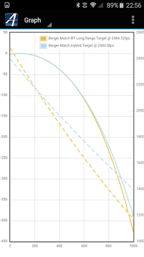 * Graph your bullet's flight with drop/wind graphs. Also compare with other ammo in one graph