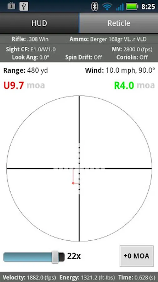State of the art ballistics solver by Bryan Litz, Applied Ballistics. Calculate accurate fire control solutions for long range rifle shooting. Accounts for all major and minor trajectory variables including the use of measured G7 BC's and even the option to use custom drag curves for specific bullets. Output is available in several formats including single shot 'HUD' view, table output, graph output, and the highly effective reticle output view, in which you can see a single shot or trajectory trace in the context of a specific scope reticle which responds to magnification adjustments and 'dialing on' elevation.