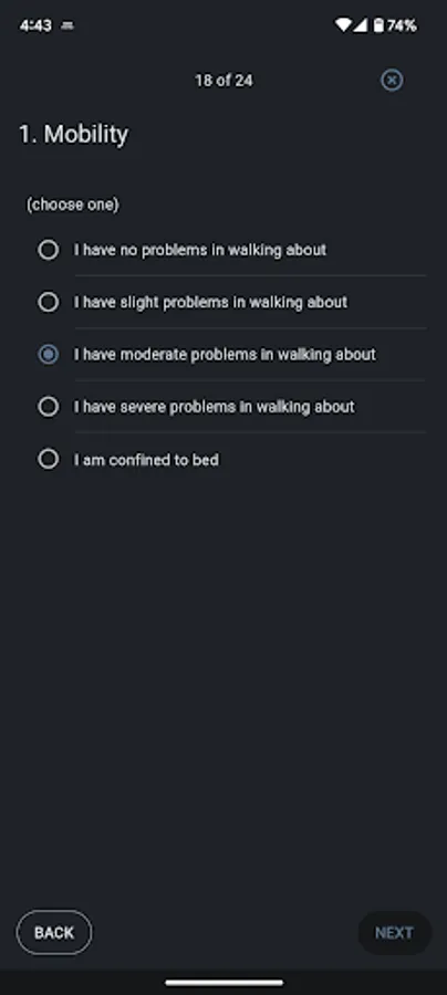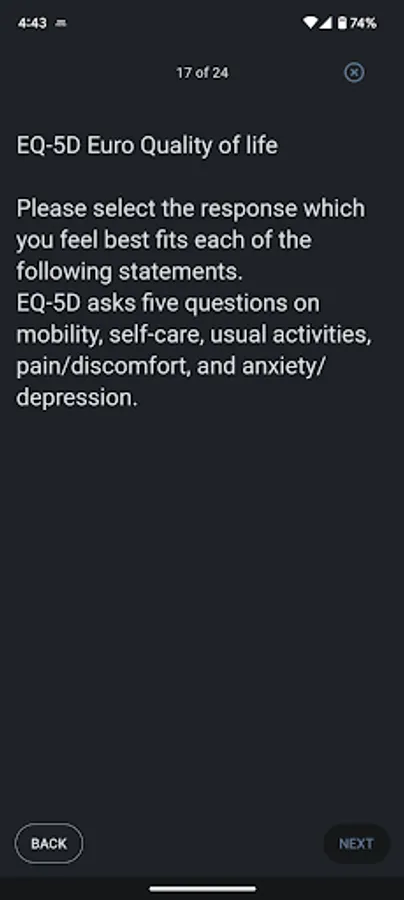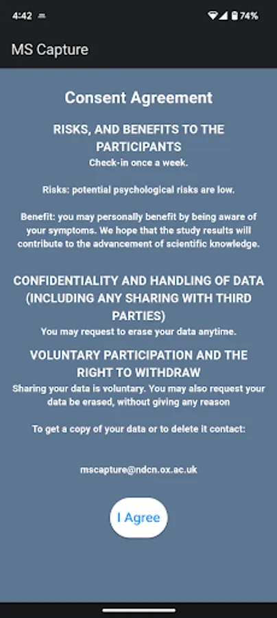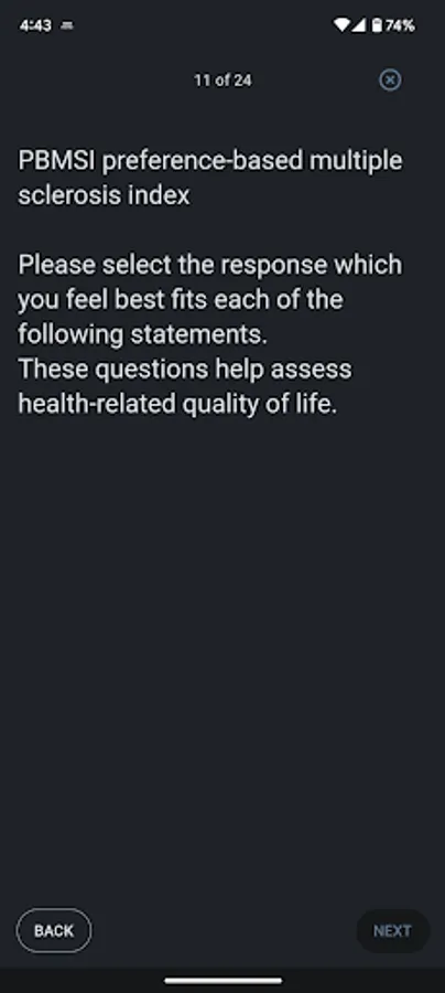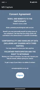 his app is designed to remotely monitor various aspects of nervous system function. The main area of measurement is walking and balance (via step count and a walking test). In addition the app will send out questionnaires at intervals to assess mood, quality of life, sexual function, bowel and bladder function, fatigue and pain.